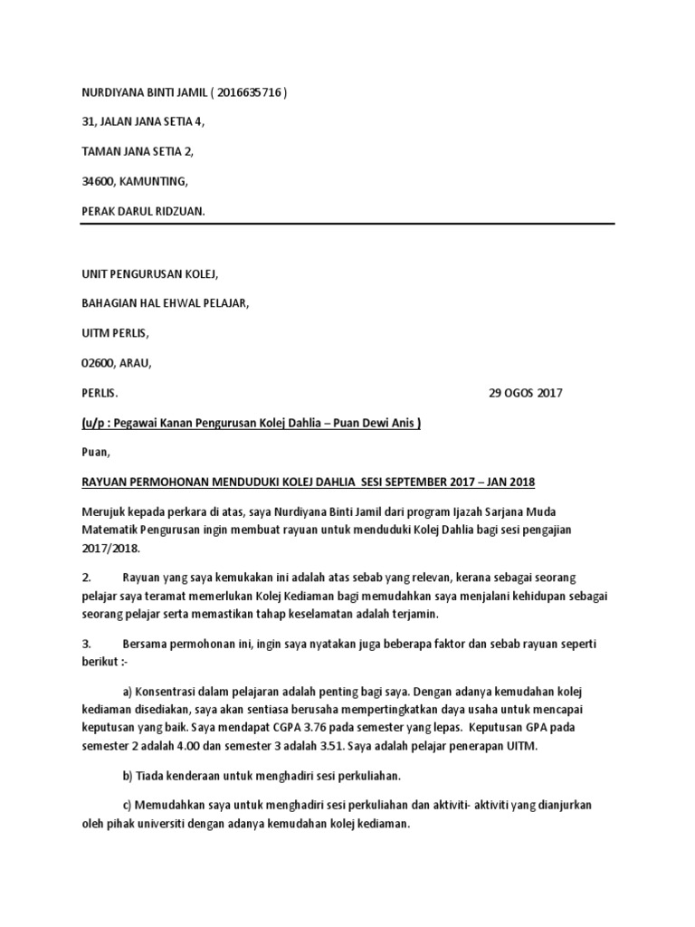 Contoh Surat Rayuan Kolej Kediaman Pdf